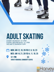 Looking for a mid-day break or a way to stay active this winter? Join us for Adult Skating every Monday and Wednesday from 12:00–1:00 pm, starting the week of January 12.